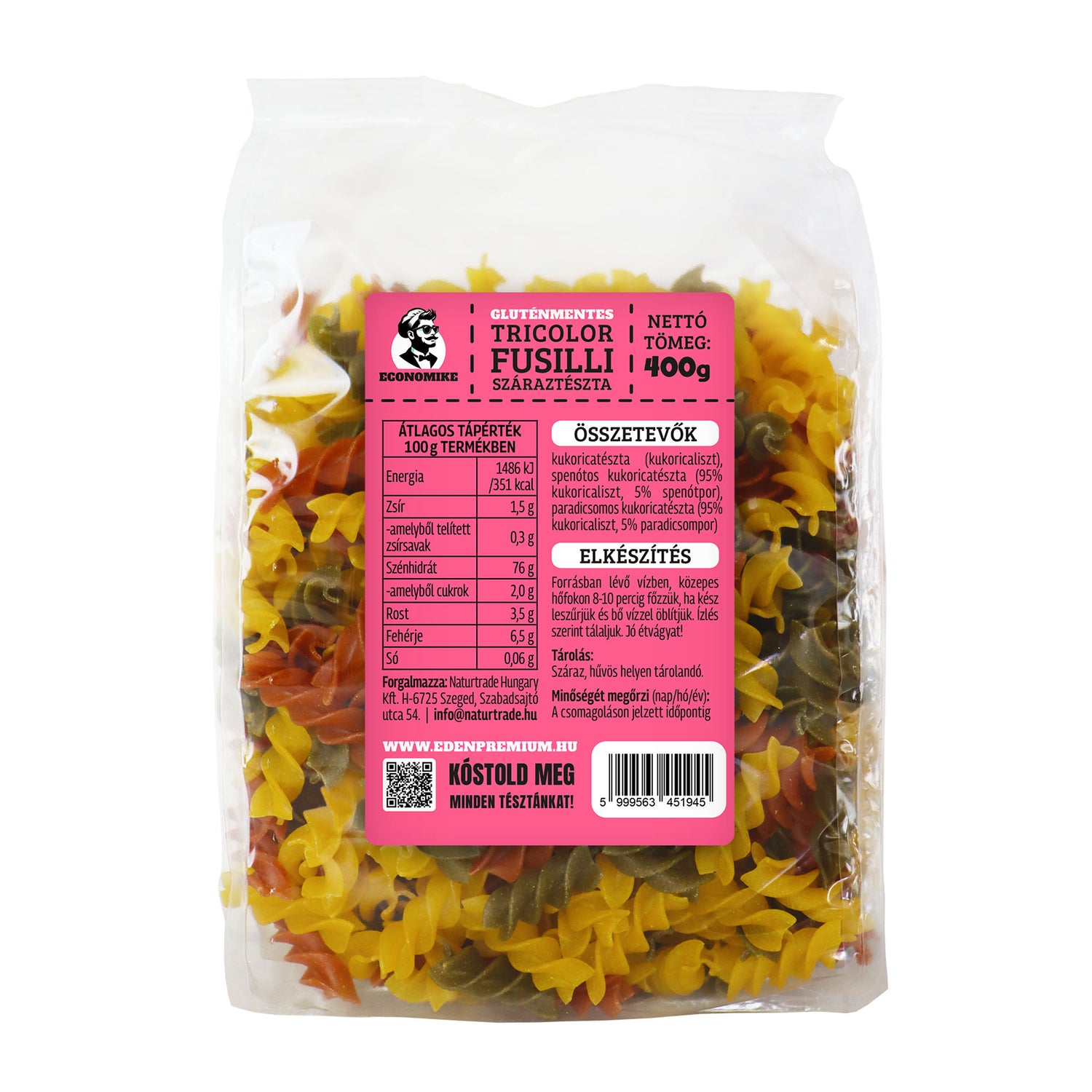 Economike Gluténmentes kukorica tészta tricolor orsó 400g
